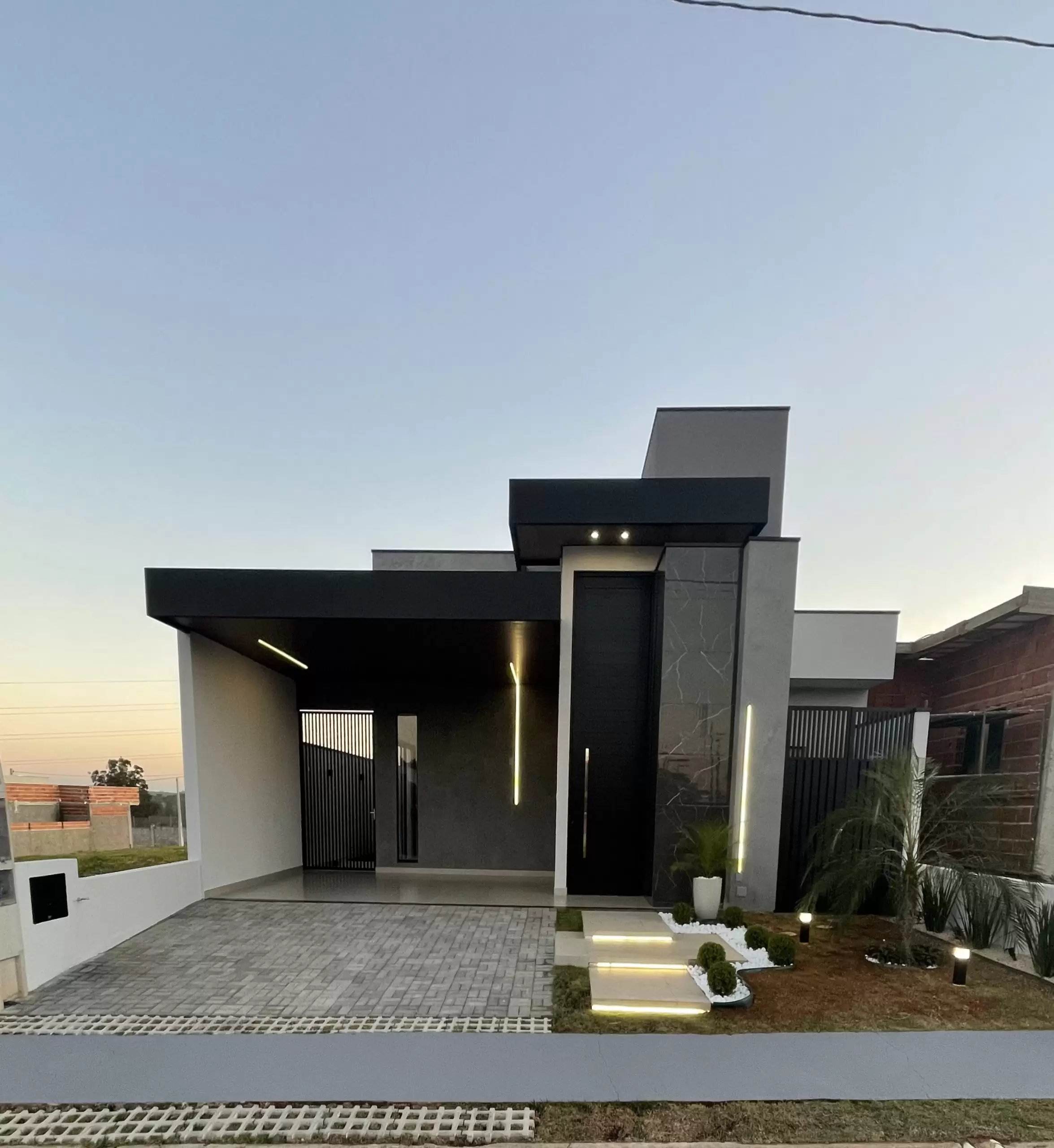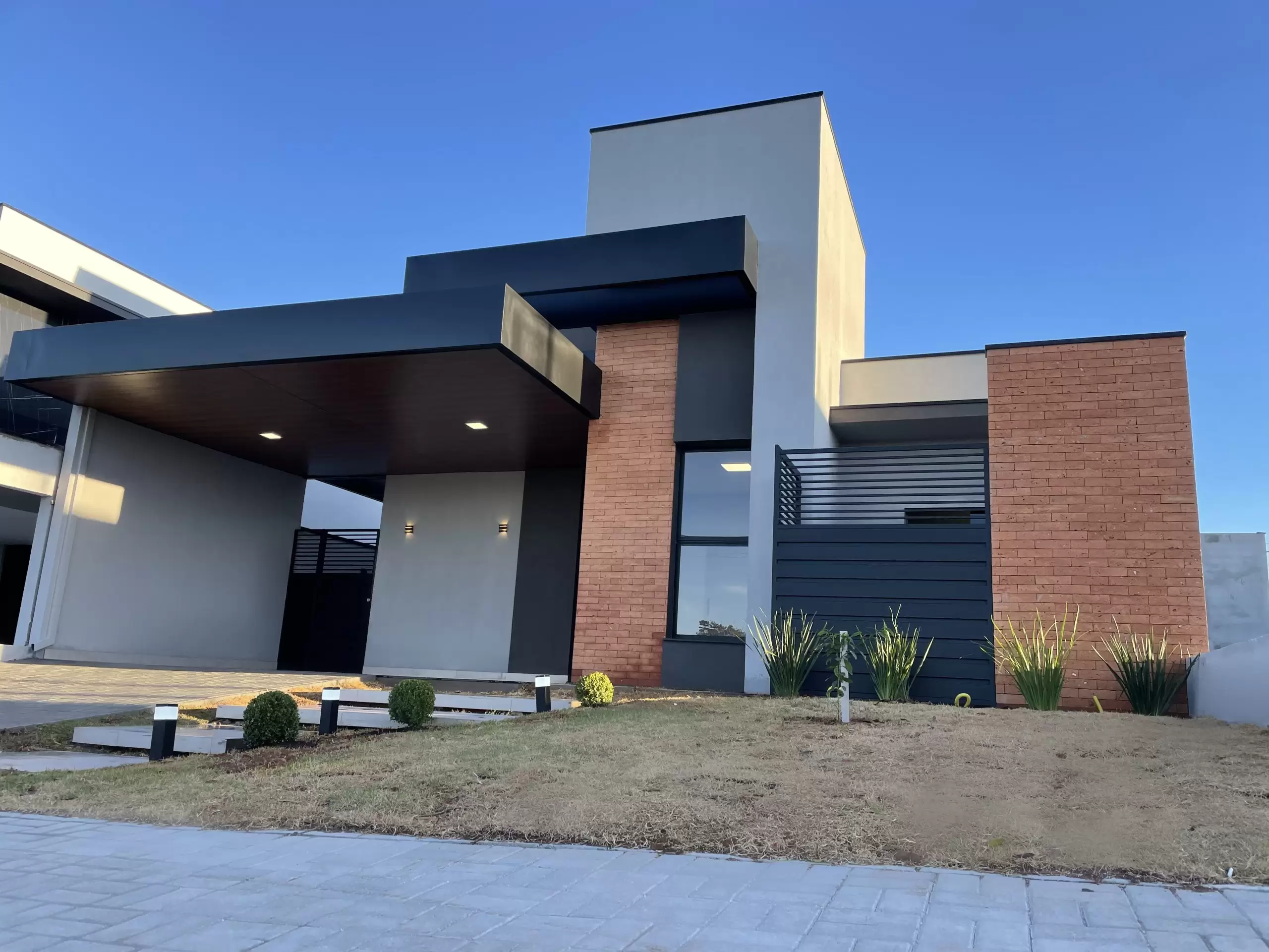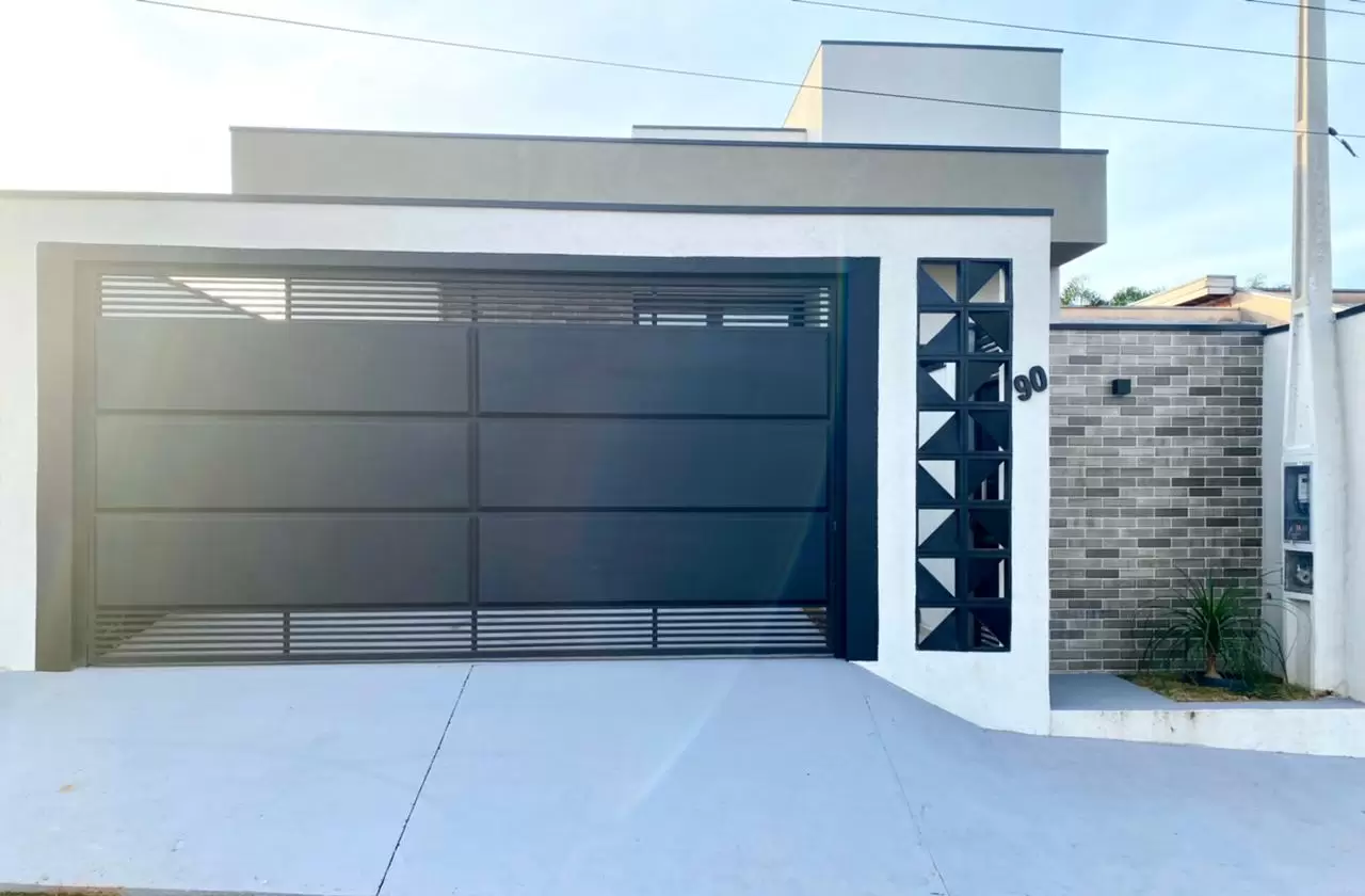 Sobrado com 3 suítes sendo uma suíte master, escritório, ambientes integrados, cozinha gourmet com ilha e uma aconchegante área de lazer.